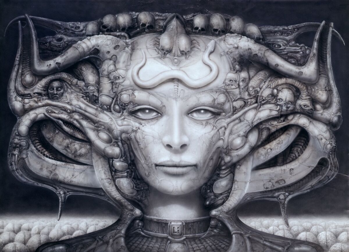 One of my husband’s favorite artists is HR Giger. Some of his most famous works can be seen in the biomechanical monsters of sci-fi movies and video games, including the alien from the Alien franchise. However, if you look up a picture of HR Giger, I think he looks like Biff Tannen from the Back to the Future movies when they go into the future and he’s older. Tell me there’s not a resemblance.
